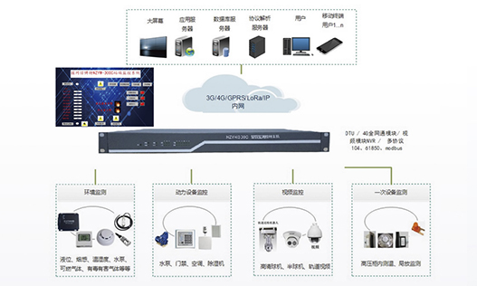 站端監控包括各種探測傳感器、數據采集單元、無線無源測溫系統、局放在線監測系統、門禁系統幾個部分。站端監控安裝在配電室實時監測現場實際環境狀態及各項參數如視頻明火、煙霧、人員非法入侵動物入侵、環境溫濕度、門禁、空調狀態、臭氣含量、開關柜母排溫度、開關柜內局放等讀取二次電力設備監控系統電量參數及報警事件信息通過通信網絡將現場各項參數及狀態上傳···